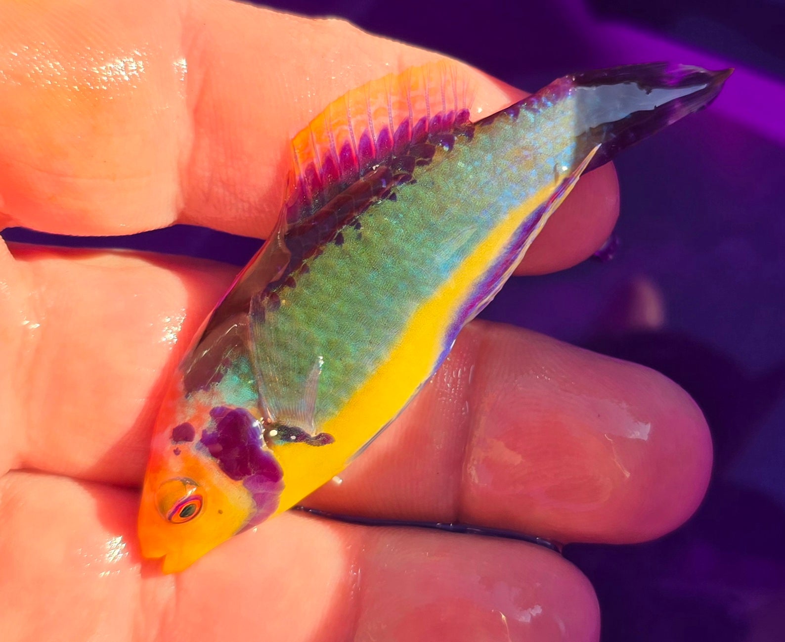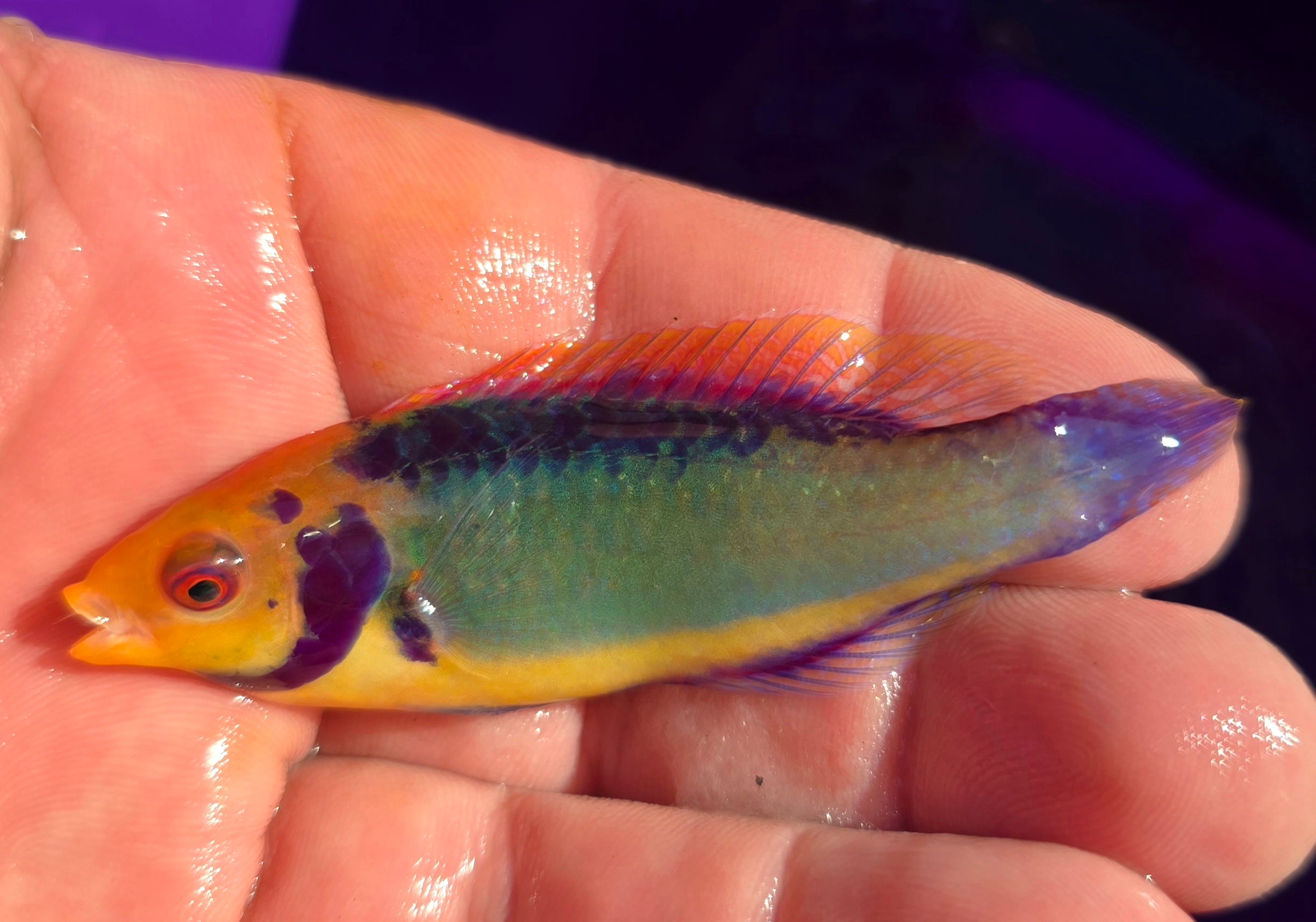The red-eye wrasse (Cirrhilabrus solorensis) is a species of wrasse native to Indonesia and Australia, where found near the Lesser Sundas, Maluka and Darwin. It inhabits coral reefs on coastal and outer reef lagoons at depths of 5 to 35 m (16 to 115 ft).