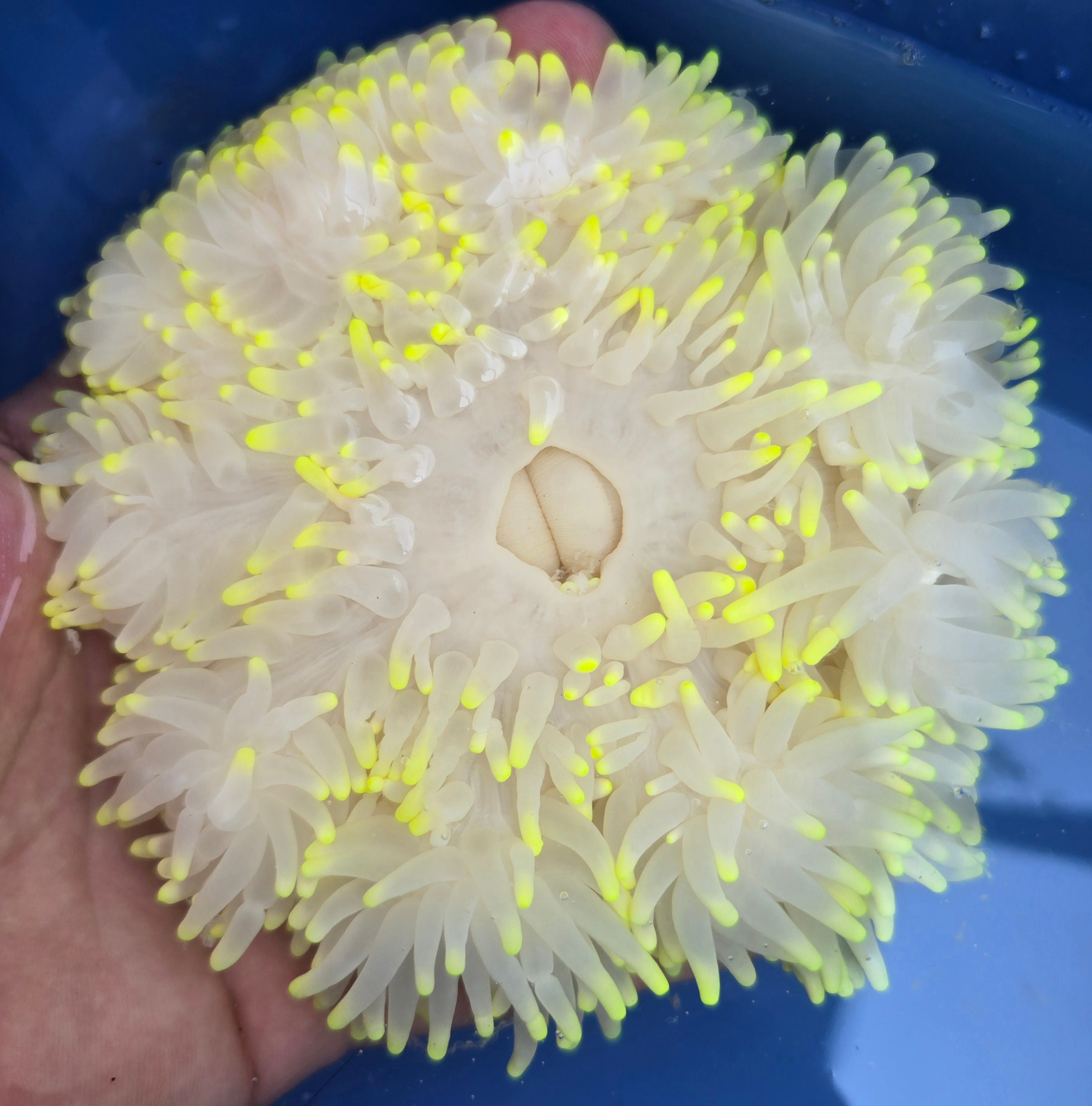 Appearance: Large, with a leathery, wavy body and long tentacles. The tentacles often have blue or purple tips.